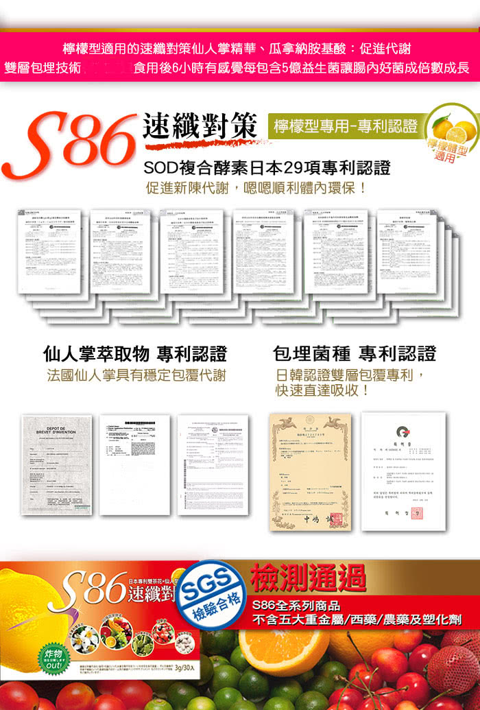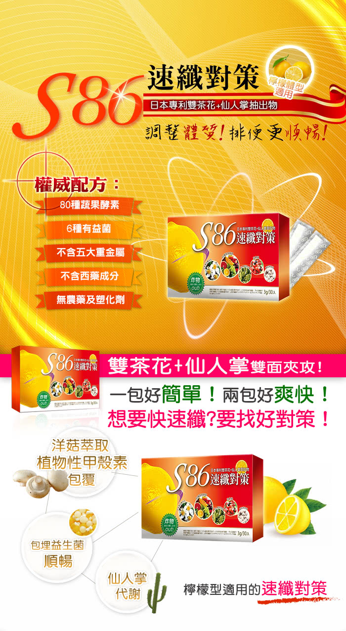 - ◆商品名稱:S86速纖對策-檸檬型適用